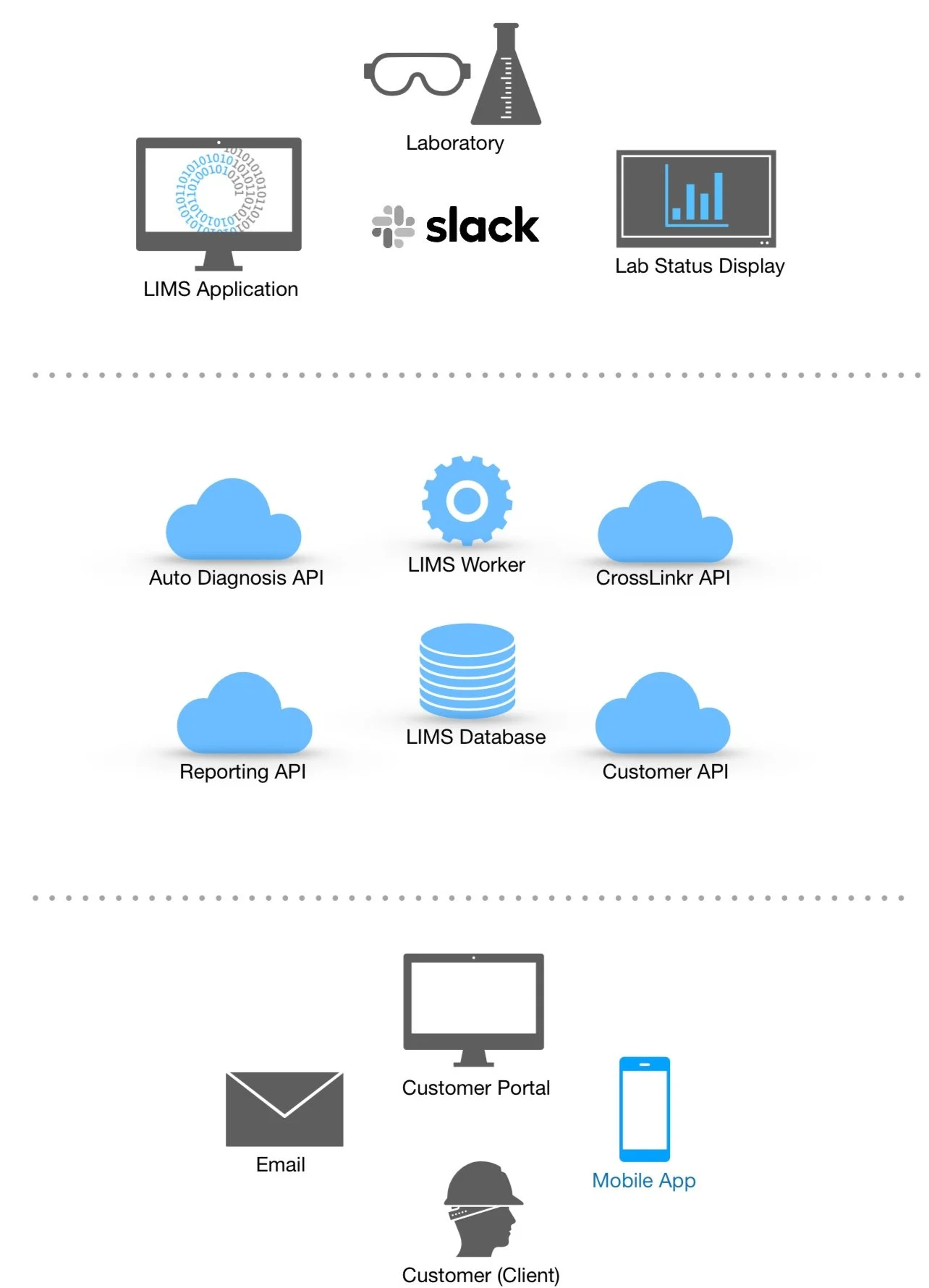 The internal-facing laboratory software provides comprehensive interaction, tracking, diagnosis and control of the sample analysis process.